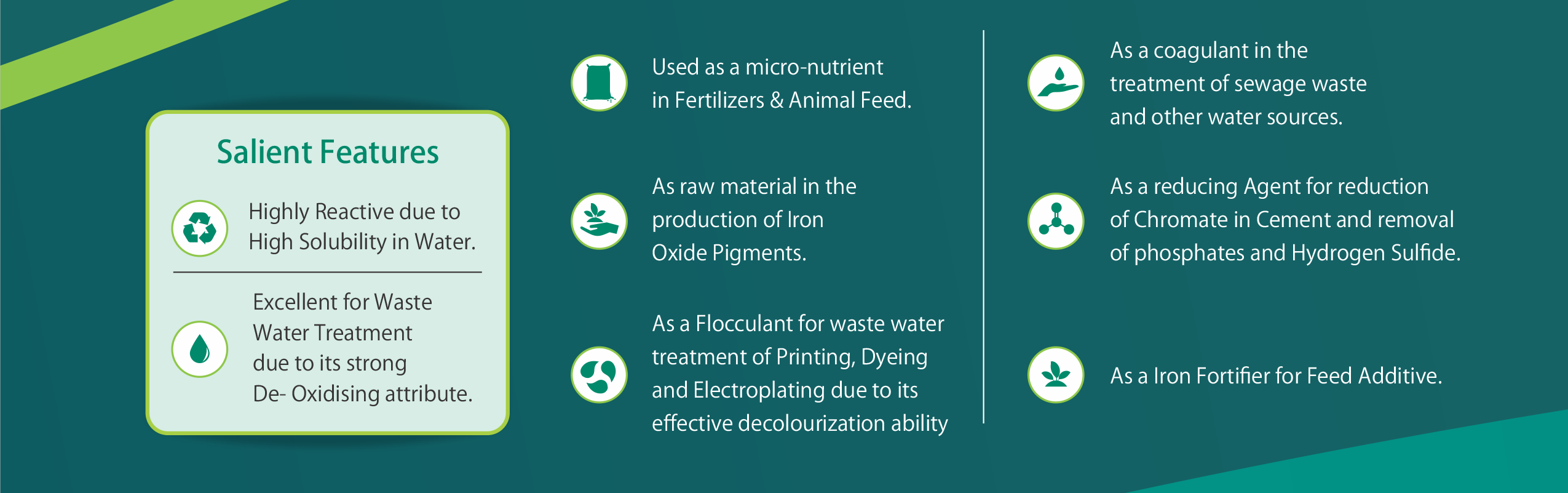 V.V.Titanium Pigments Pvt Limited is the major producer of copperas as a by-product, with over shadow short of two decades experience supplying to various user industries.