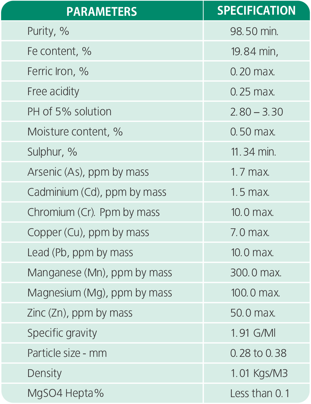 Iron (Percent by Mass) | 19.84 (min) |